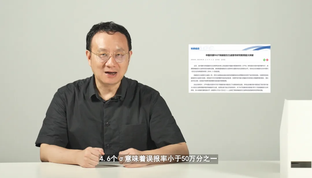 現在,終於輪到中國團隊出場了。它叫做中國脈衝星測時陣列(Chinese Pulsar Timing Array,簡稱CPTA),跟歐洲EPTA-印度InPTA、北美NANOGRAV和澳大利亞PPTA等合作,一起在6月29日左右宣佈了發現納赫茲引力波。區別在於,其他三個團隊的置信度最高為4個σ(即標準偏差),而中國團隊的置信度是4.6個σ,比它們都高,4.6個σ意味着誤報率小於50萬分之一(http://nao.cas.cn/news/ky/202306/t20230629_6792519.html)。反過來,其他三個團隊的數據積累時間為15至25年,中國團隊只有3年5個月。