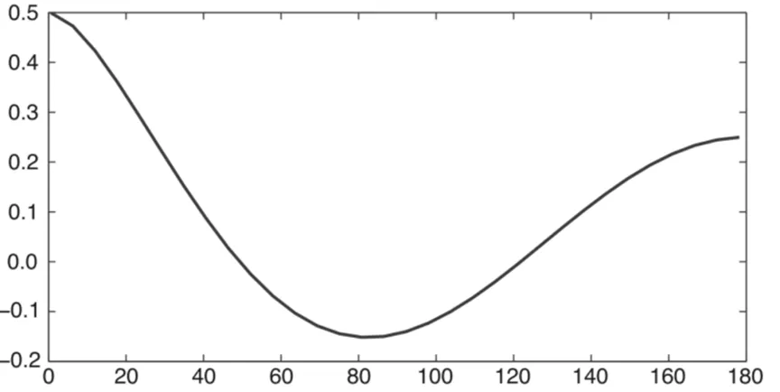 Hellings-Downs曲線。橫座標是一對脈衝星在天球面上的夾角(θ),縱座標是兩個脈衝星到達時間的相關係數。如果引力波的確存在+和x兩種偏振模式,則PTA測量到的脈衝到達時間的相關係數隨着它們之間夾角(θ)的變化就是HD曲線。來自:Jenet, F.A. & Romano, J.D. 2015, Am. J. Phys. 83, 635