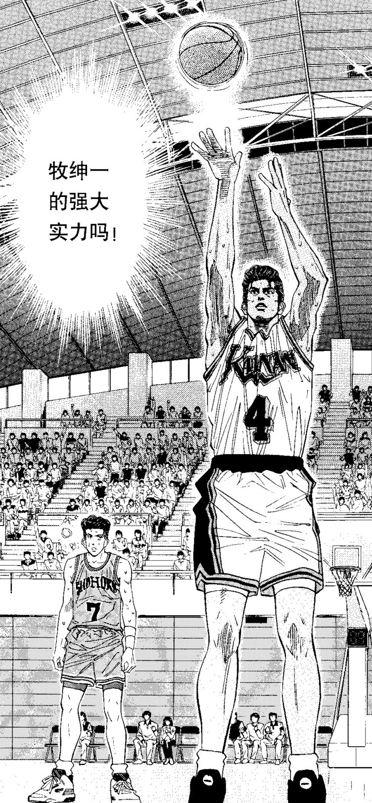 湘北vs海南,牧是海南的核心最終boss。赤木挑戰他。櫻木挑釁他。湘北全隊試圖翻越他。
