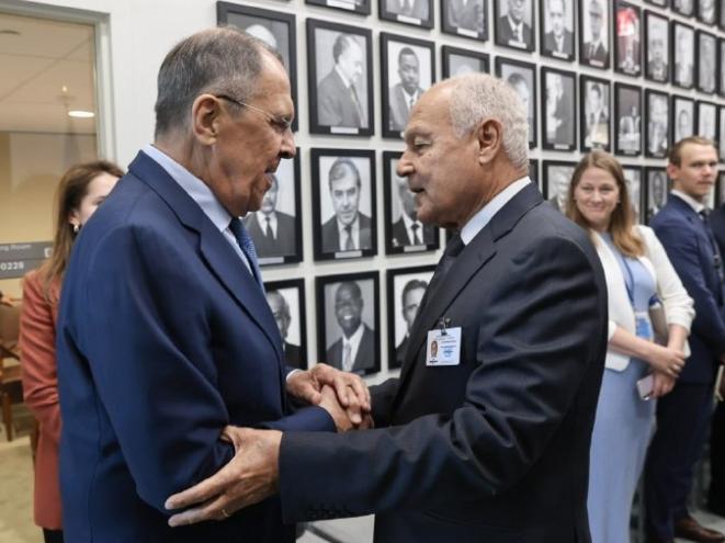 與阿拉伯國家聯盟秘書長阿布爾蓋特舉行會談,這真的是老朋友了。
