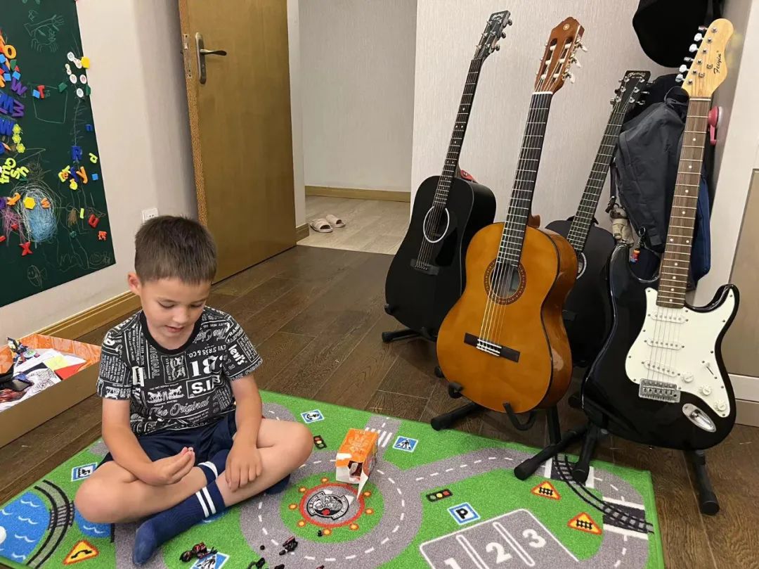 很快家裏有了四五個不同的吉他,雖然他只有一雙手和三天的琴藝。
