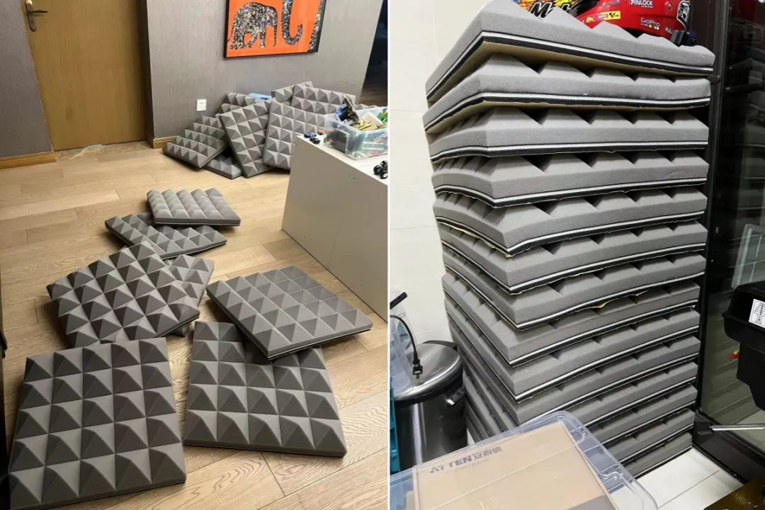 很快我發現,這是木馬爸爸在給房間貼隔音泡棉,他要打造一個錄音室級別的房間。