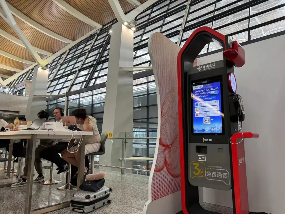 要實現一部手機游上海,通信是第一環。今年7月,上海電信在浦東機場一站式入境綜合服務中心提供短期通信套餐,包括7日、15日、30日的電話卡,確保通信、上網、打車、外賣等便利性。在服務中心一側,一台紅色醒目的Hello老友亭佇立着,不同的是,這個數字公話亭是全英文版,可以提供全市範圍的免費3分鐘通話,還能為遊客提供應急充電、信息查詢、駐滬使領館通訊錄查詢等自助服務。