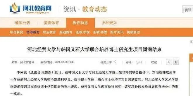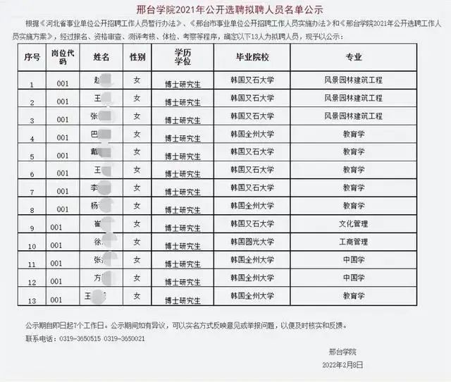 前兩年,河北省的邢台學院也曾公開選聘了13名博士,這13名博士不僅全部是女生,還全都來自韓國的高校。