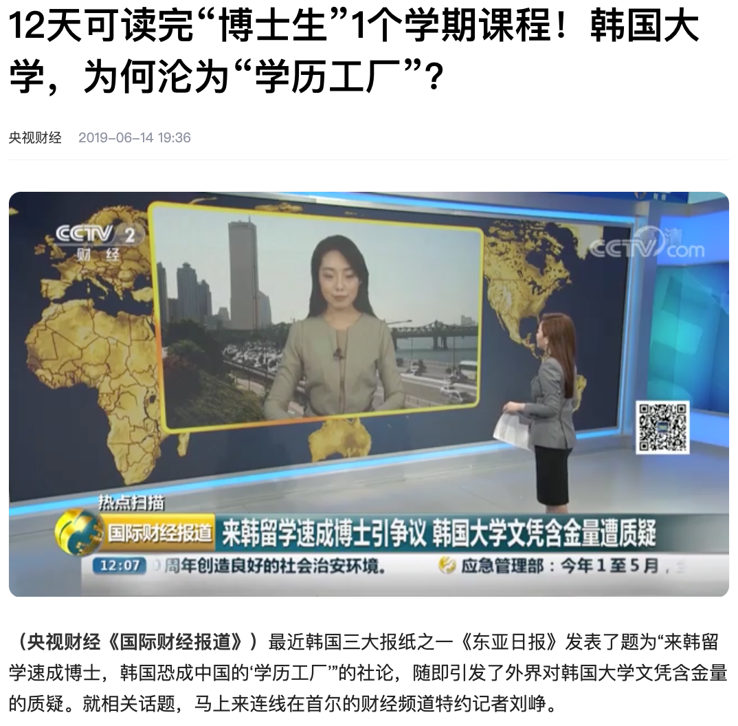 按當時行情,赴韓留學需要拿17萬元左右的學費,外加1.8萬中介費,滿打滿算花個20萬,就能水出個博士學位。