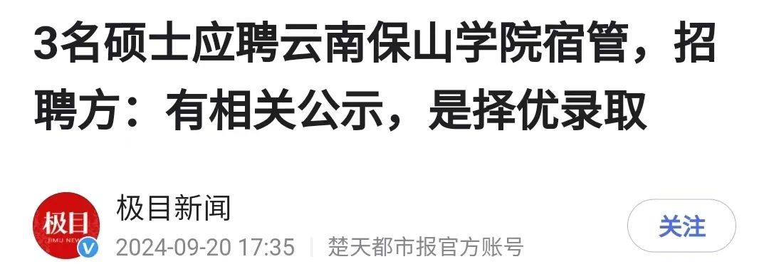 前幾天斯基看到一條新聞,説雲南保山學院的後勤服務公司,招了3名碩士當宿管。
