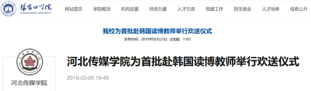 此前河北傳媒學院、張家口學院,都曾為選派赴韓讀博的教師舉辦歡送儀式。