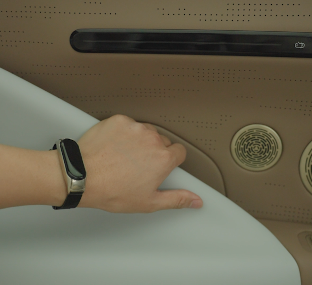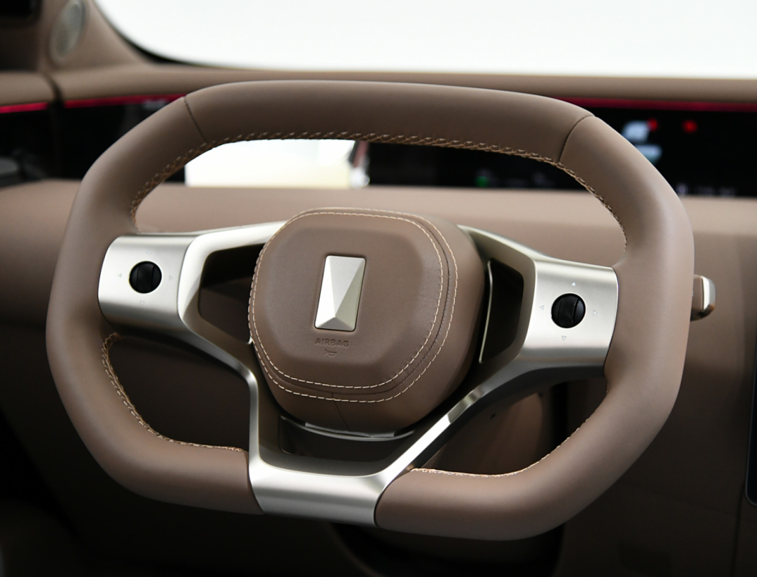 不像很多電車喜歡走極簡風,它的內飾很有層次。上面一長條的遠端屏,下面是多邊形方向盤,兩側門板上也做了很多裝飾。
