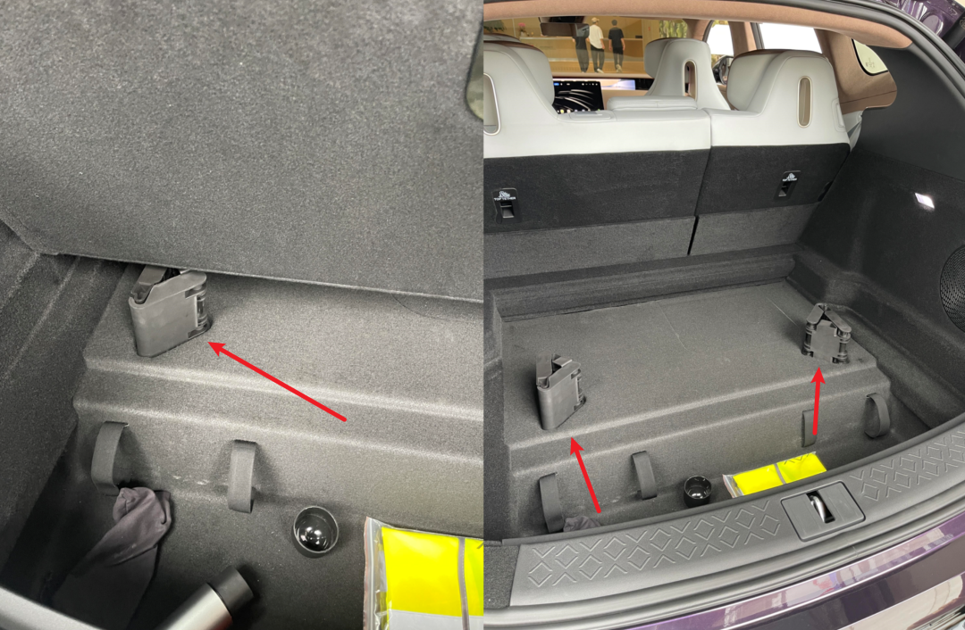 但其實有了這倆,後備廂承重明顯強不少。正好我最近試了極氪 7X ,那車中間沒有受力點,勁兒太大的話,板子都能按得動,而阿維塔 07 這裏就穩多了。