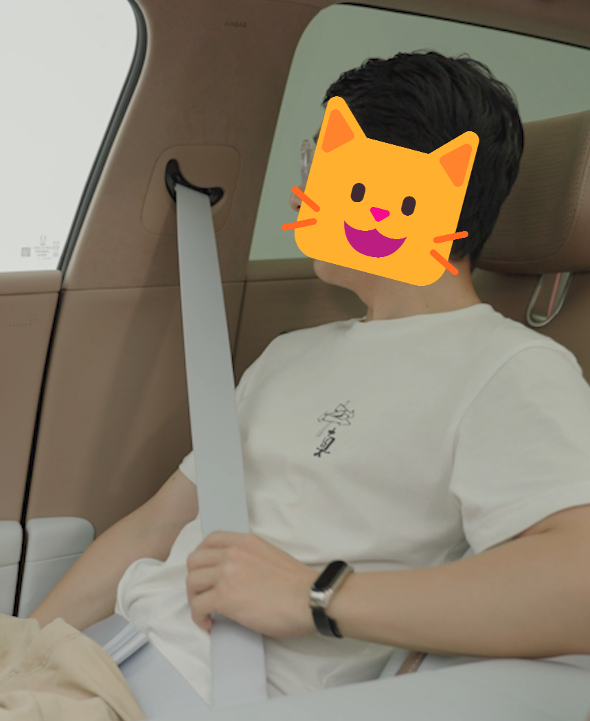 而且它的前排安全帶固定點高度竟然不可調節,對比一下, Model Y 、理想 L6 、小鵬 G6 可都是高度可調的。這個價位的車還在這裏做刀法,感覺真沒必要啊。