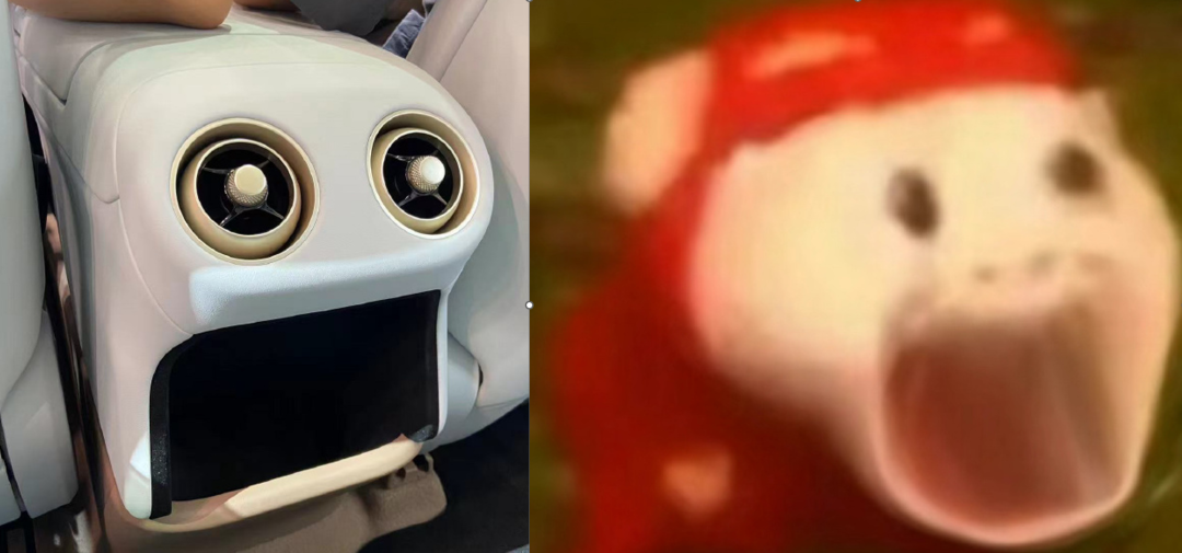 後排這兩個炮筒式出風口,長得好看,旋鈕也有質感,但就是和下面的開放式儲物盒放在一起,也太像表情包了。。。