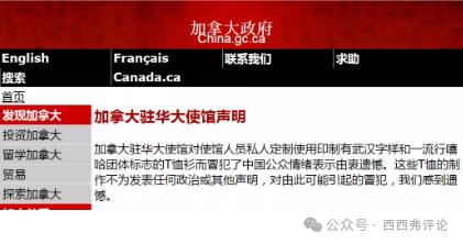 疫情期間,加拿大大使館定製了一批武漢蝙蝠文化衫,互聯網上引發輿情後,加拿大大使館聲明,表示遺憾。