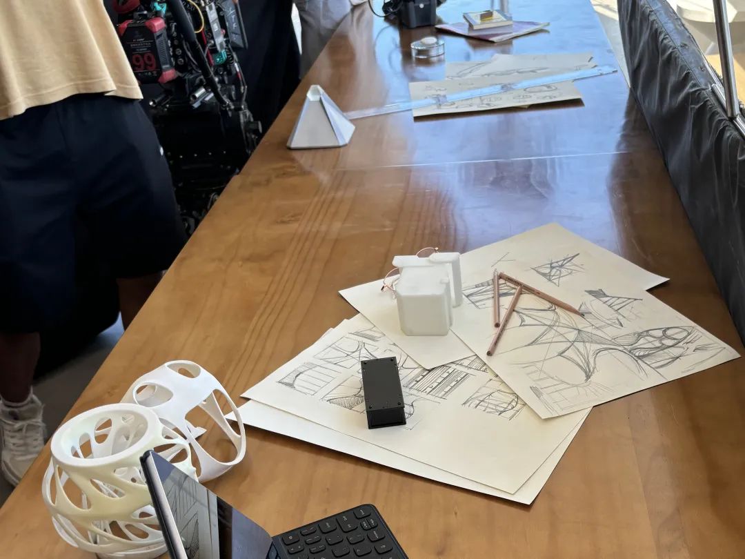 在《雲愛人》開機前5天,這個道具能不能實現還是未知數。“情感溝通是需要被鏈接的,我們在設計道具的時候從尺寸以及人物視線多方考慮,選擇了一款可便攜的模型樣式。科幻電影的核心道具必須有自己的特點,才能讓觀眾更進入情境。我們讓產品設計師先進行3D建模,再給打印好的模型噴漆,為了增加聲音的呼吸感,還在裏面放了可調節的燈。”恰恰是這個立體鑽石形AI產品的設計,讓作品有了科幻感。