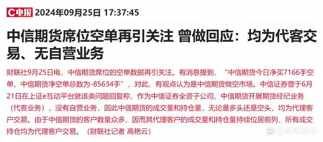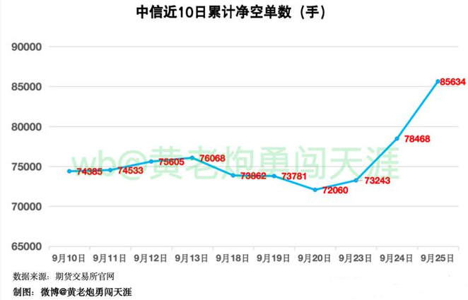 昨天,一張截圖刷爆網絡:9月25日,中信期貨淨買7166手空單、中信期貨淨空單總數為-85634手……