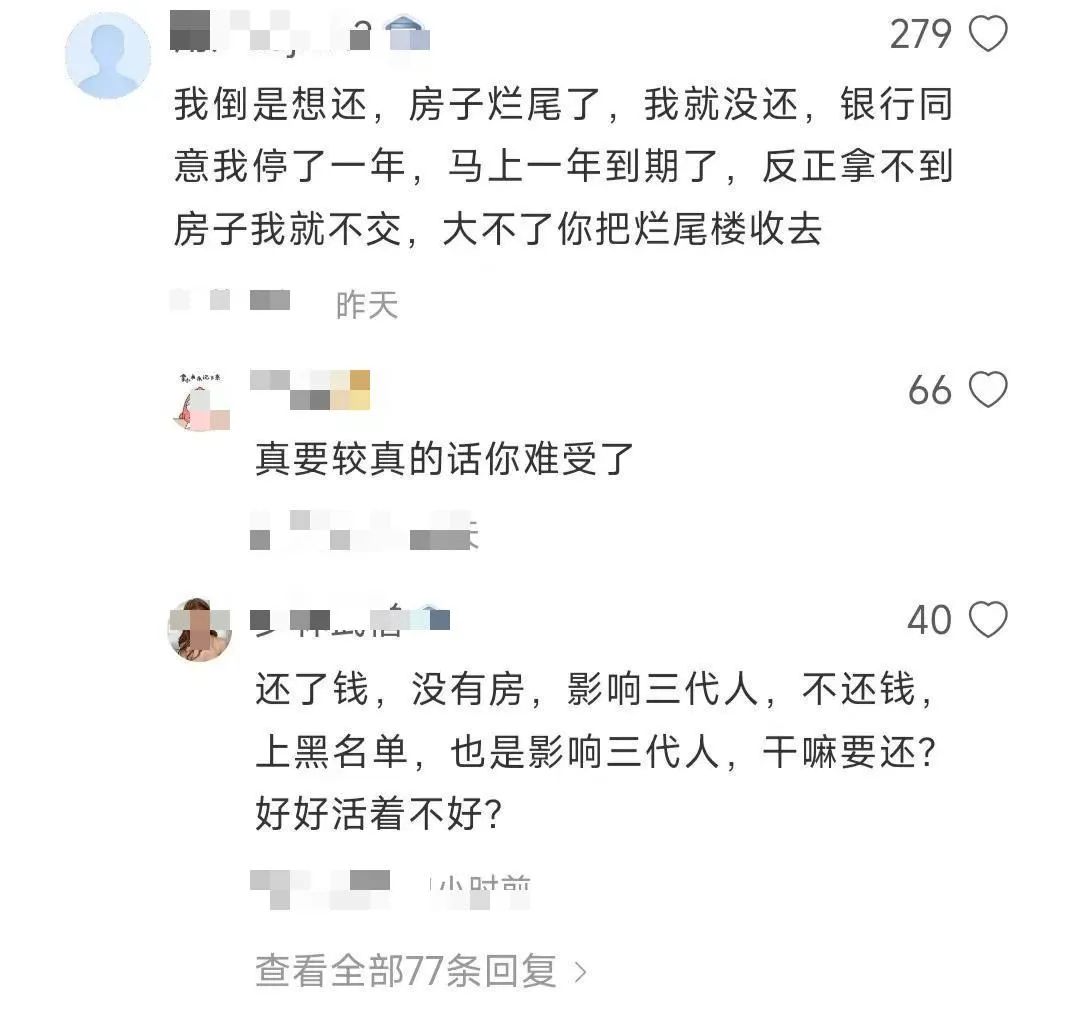 更糟糕一點,斷供會導致個人徵信出現污點,被拉進黑名單,限制高消費倒沒什麼,主要是一進了老賴名單,這輩子前途基本也就和光明無緣了。