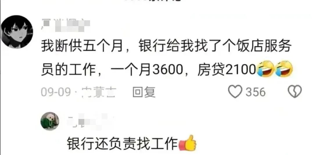 有的銀行為了讓顧客度過難關,甚至會臨時充當中介,給他們介紹工作,比如進銀行當保安,或者去商場、飯店當服務員,又或者進廠等等,總之讓人能緩上一口氣,只要別斷供,什麼都好説。