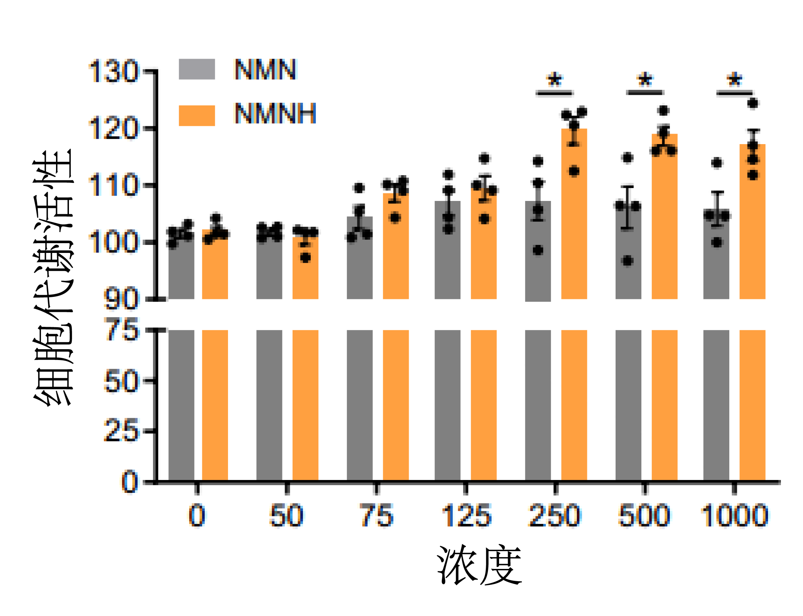圖注:相比NMN,NMNH更能提升細胞代謝活性
