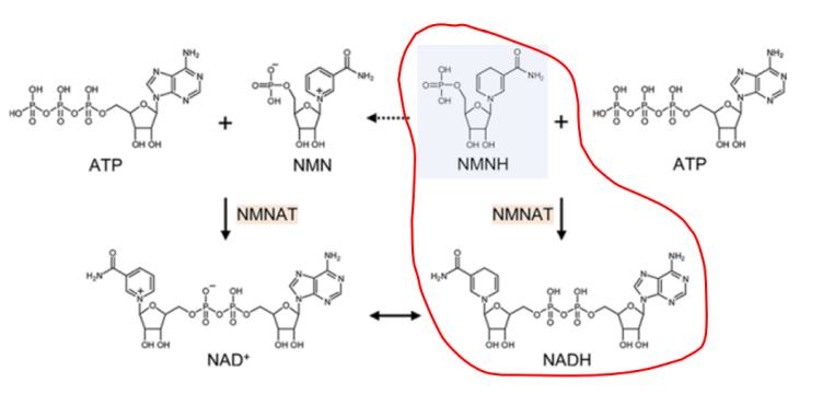 [3] Liu, Y., Luo, C., Li, T., Zhang, W., Zong, Z., Liu, X., & Deng, H. (2021). Reduced Nicotinamide Mononucleotide (NMNH) Potently Enhances NAD+ and Suppresses Glycolysis, the TCA Cycle, and Cell Growth. Journal of proteome research, 20(5), 2596–2606. https://doi.org/10.1021/acs.jproteome.0c01037