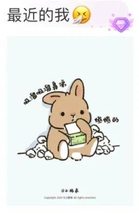 有粉絲在視頻下面曬出可愛的手繪圖,一隻可愛的兔子用紙巾擦鼻涕,配文是“最近的我”。