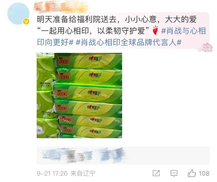 作為公認的內娛頂流,肖戰的影響力不言而喻。自2022年以來,心相印便多次強化“感受一方紙巾的温度”“用心相印的守護”“不止柔韌”等詞句,強化品牌記憶。