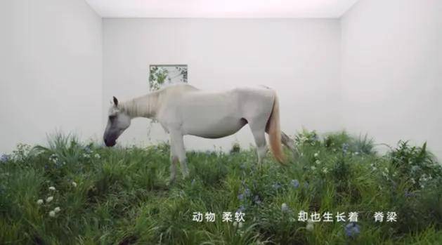 短短几分鐘,琴絃、冰、雪、風……物質世界中堅硬與柔軟的物體相繼出現,最後落到了自然界的柔韌生命——“動物柔軟,卻也生長着脊樑”。