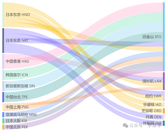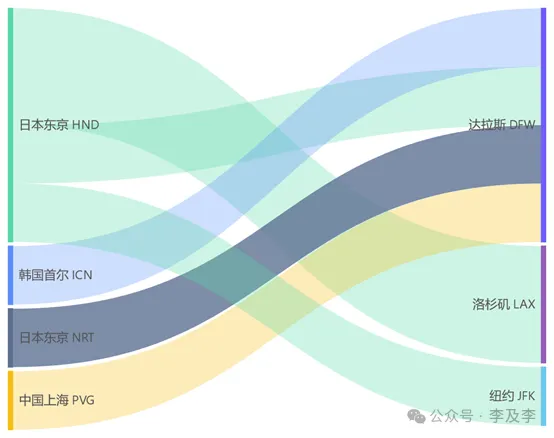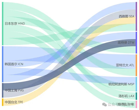 事實上美國三家航空公司已經在這麼做了:如果我們將整個東亞和東南亞的赴美航線列出來,我們可以發現,美國航空將自己70%的跨太平洋運力投放在日本,聯合航空投放了50%,達美航空投放了42%,總共合起來超過50%(181班);其次是韓國(61班)、中國內地(39班)、中國香港、中國台灣(各21班)。