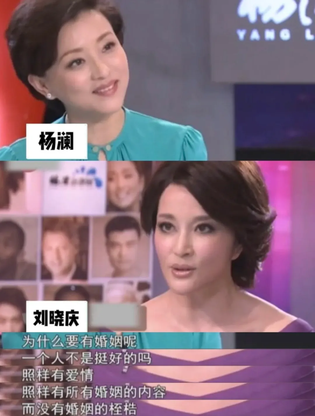**劉曉慶多次表示不在意婚姻制度,楊瀾好奇為什麼還結了多次(按:四次),劉曉慶表示不是我想結,都是人家“逼婚”。**別説,這真不是誇張。魅魔曉慶的故事,簡直是編劇窮盡腦汁也寫不出的奇詭暢快。