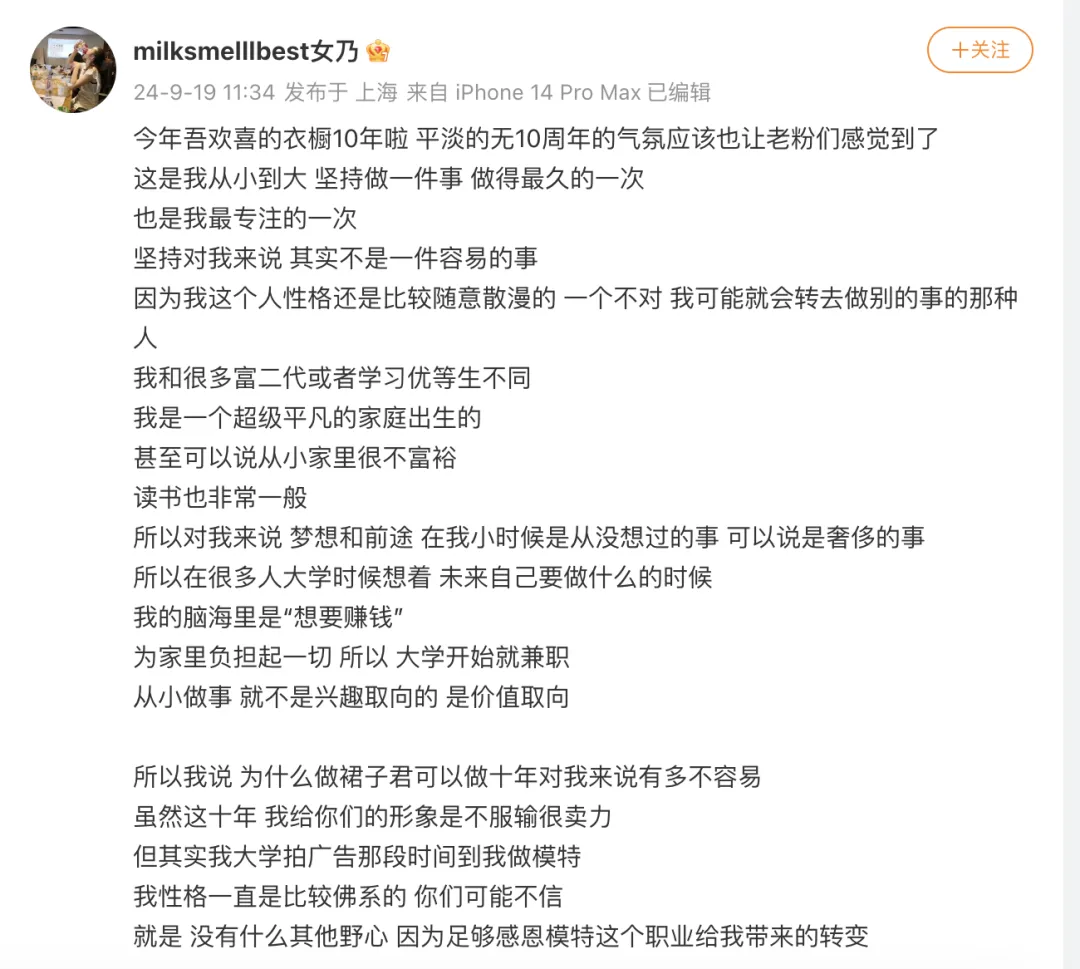 時代機遇外,張大奕在微博長文中還提到家庭和個人精力的問題,但最重要的原因還是在行業上。