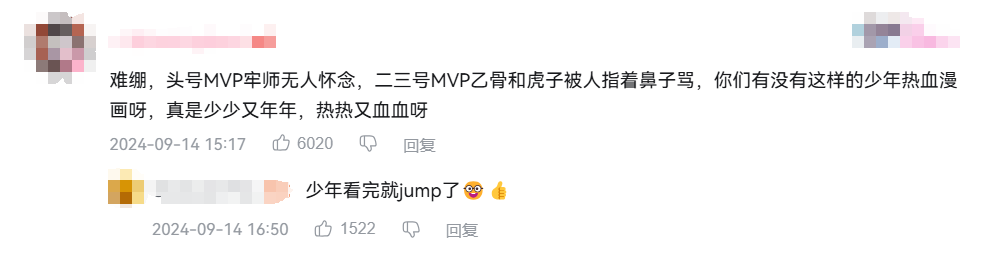由此,在《週刊少年JUMP》上出現了《坂本DAYS》《藍箱》《物理魔法使馬修》等新一批人氣連載作品,其中大部分都進入動畫化階段或改編動畫已經播出,作品影響力還在持續提升。但相比起《咒術回戰》《鬼滅之刃》《電鋸人》時期,新生代台柱們的表現難以望其項背。