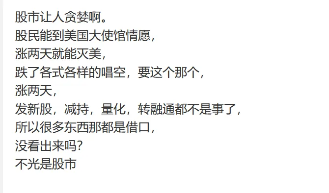 無論如何,資本市場都是我國新時期下經濟建設的重要一環,**之前憤憤曰“大不了關了”肯定不理性,但又一腦門陷入到“做大做強”的幻想中,也需要冷靜一二。**畢竟,不論如何進行制度建設,也只能起到規範業務流程、平衡風險分擔的效果。對散户來説,還是那句話,“股市有風險,入市需謹慎。”