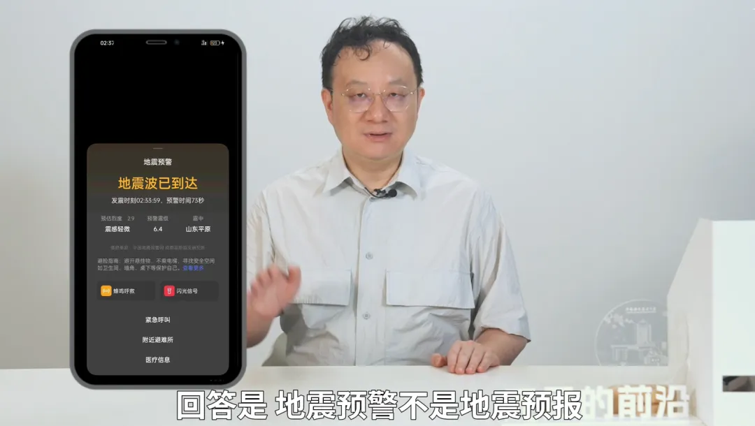 為什麼地震可以預警?因為電磁波通信比地震波跑得快。光速是30萬公里每秒,而地震波的速度只有幾公里每秒。比如汶川剛發生地震,地震波還沒傳到成都,但是我們在汶川的地震台上已經記錄到了,經過測算,我們知道這個地震有多大,對成都會有影響,於是我們立刻給成都發通知,説你們幾秒後會接收到多大的振動。大家在手機上收到的地震預警,就是這麼來的。
