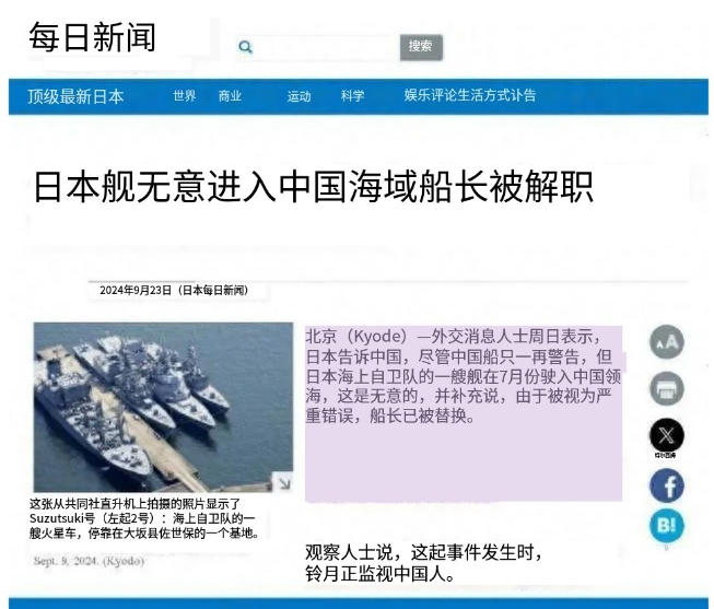 可就在9月24日,日本防衞大臣木原稔在記者會上,竟然就日本海上自衞隊護衞艦“涼月”號今年7月闖入中國領海一事,向中國表達了歉意,而且聲明已在7月撤換了該艦艦長。