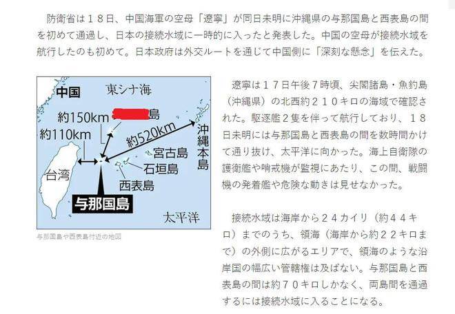 按照日本自衞隊的跟蹤監視結果,遼寧艦編隊已經進入兩島24海里以內水域,這是我軍航母有史以來第一次貼近日本領海,穿越日本的毗連區,而這都騎臉上了,日本艦機也只是遠遠地跟着。