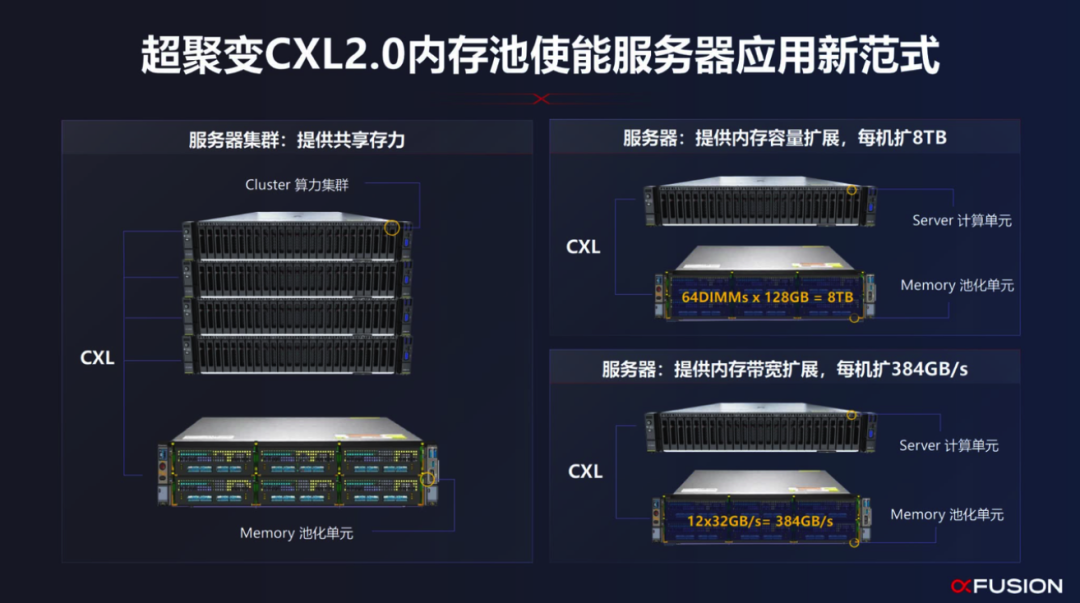 具體到服務器設計上,CLX2.0可以支持每機提供8TB內存容量擴展,同時提供384GB/s的內存帶寬擴展。