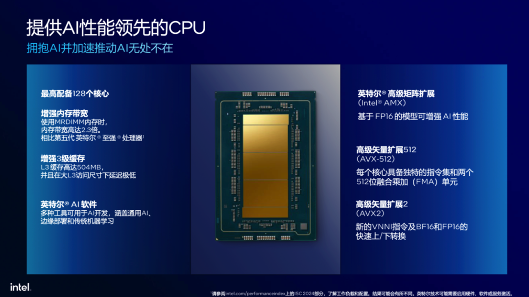 英特爾®至強®6 性能核處理器的出現,就為AI計算帶來了這樣一個全新的支點。
