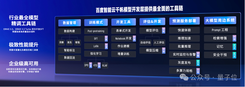 模型開發層謝廣軍談到,千帆3.0的模型開發層提供最全面的工具鏈。