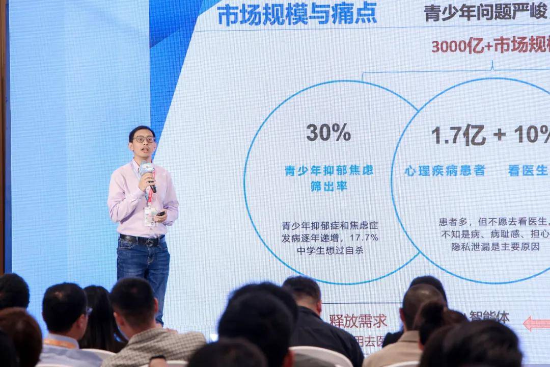 心理諮詢是一個比較新穎的領域,目前需求與供給之間有着巨大的缺口。全中國目前精神心理服務滲透率約為1%~2%,而未來心理健康服務滲透率會達到50%左右。獲得“創企組”二等獎的鏡象科技:產品包括了AI測評師(自適應量表+數字人視頻問診進行篩查)、AI傾訴師(為心理亞健康人羣提供輕諮詢服務) 、AI心理師(為輕中度患者提供心理干預治療)等,他們創業的核心點是要將昂貴的醫療服務通過AI做便宜,使其從小眾化到做消費化,讓每個人都能用上。