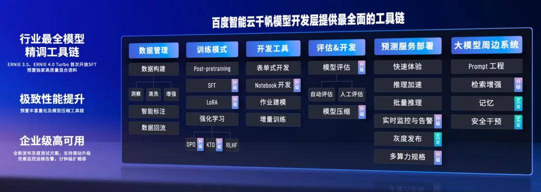 此外,文心大模型已經形成旗艦大模型、主力大模型、輕量大模型、垂直場景大模型等豐富的大模型家族,滿足企業個性化的模型需求。升級後的千帆3.0,不但可以調用包括文心繫列大模型在內的近百個國內外大模型,還支持調用語音、視覺等各種傳統的小模型。可以説,百度的大模型平台已經能夠滿足千行百業創業者的各種需求。