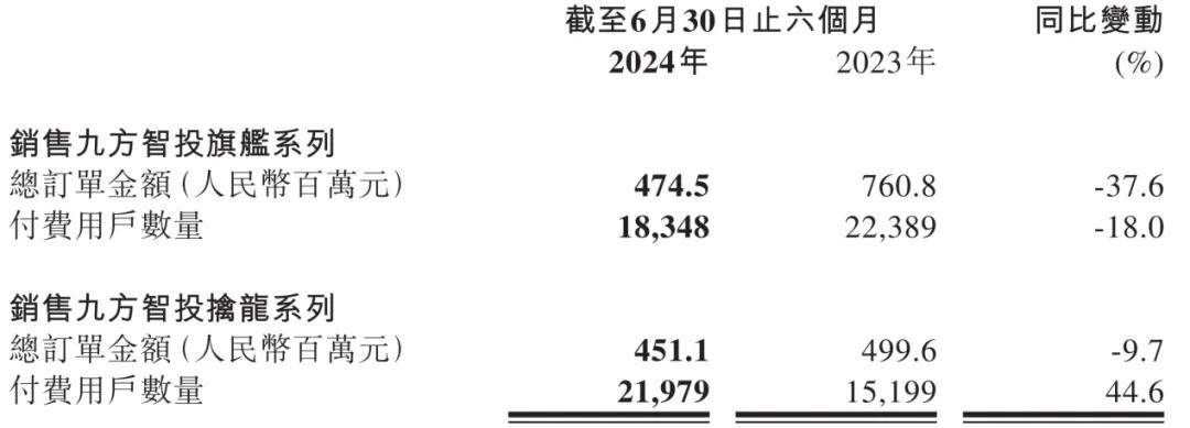 2024年上半年,旗艦系列的付費客户同比下滑18.0%至1.83萬人,客户減少超4000人,這帶動旗艦系列的總訂單金額同比減少37.6%。