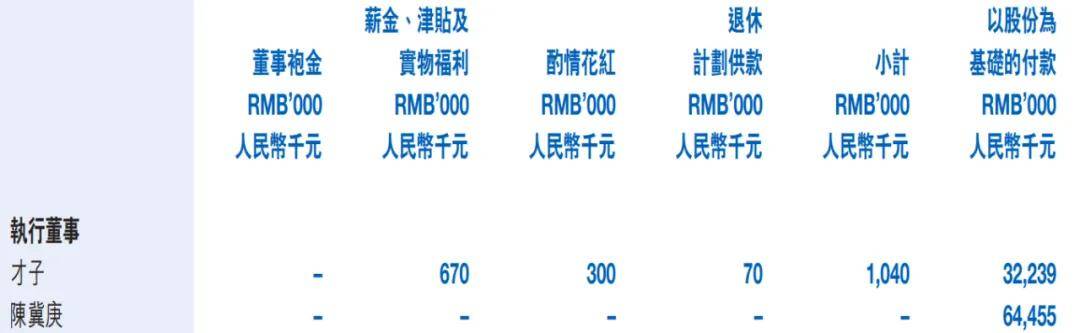 而在2023年時,公司執行董事兼行政總裁陳冀庚獲得股份薪酬開支高達6445.5萬元、時任執行董事的才子獲得股份薪酬開支3223.9萬元,高管們的高報酬由此可窺一二。