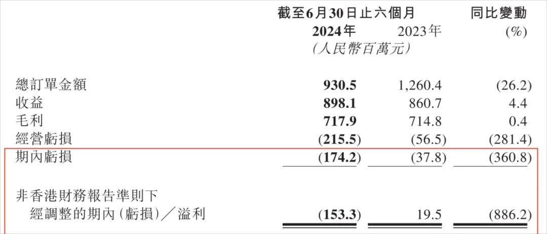 財報顯示,2024年上半年,其利潤虧損1.74億元,同比下滑360.8%;經調整期內虧損1.53億元,同比大跌886.2%,由盈轉虧。