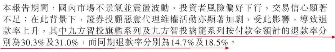 對此,公司解釋是受資本市場表現疲軟等影響,投資者交易情緒低迷,加之證券投顧惡意代理維權退款影響。