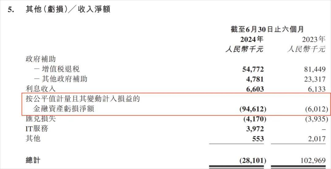 不過,九方智投控股的投資可以量化。2024年上半年,九方智投控股按公平值計量且其變動計入損益的金融資產虧損了9461.2萬元,同比擴大近15倍。