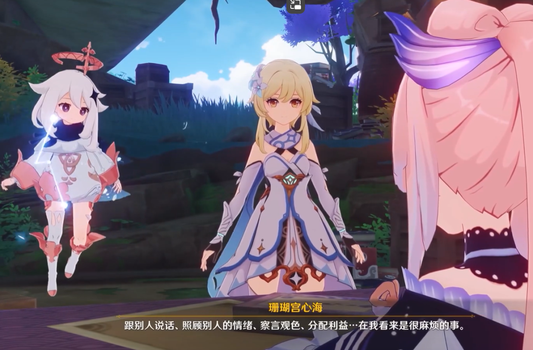 比如在其中任務的文案對話裏可以得知,心海實際上是一個被命運與責任推上高位的人,枱面之下,她不僅不善於處理人際關係,甚至社恐到每次演講都會不自覺地手抖。