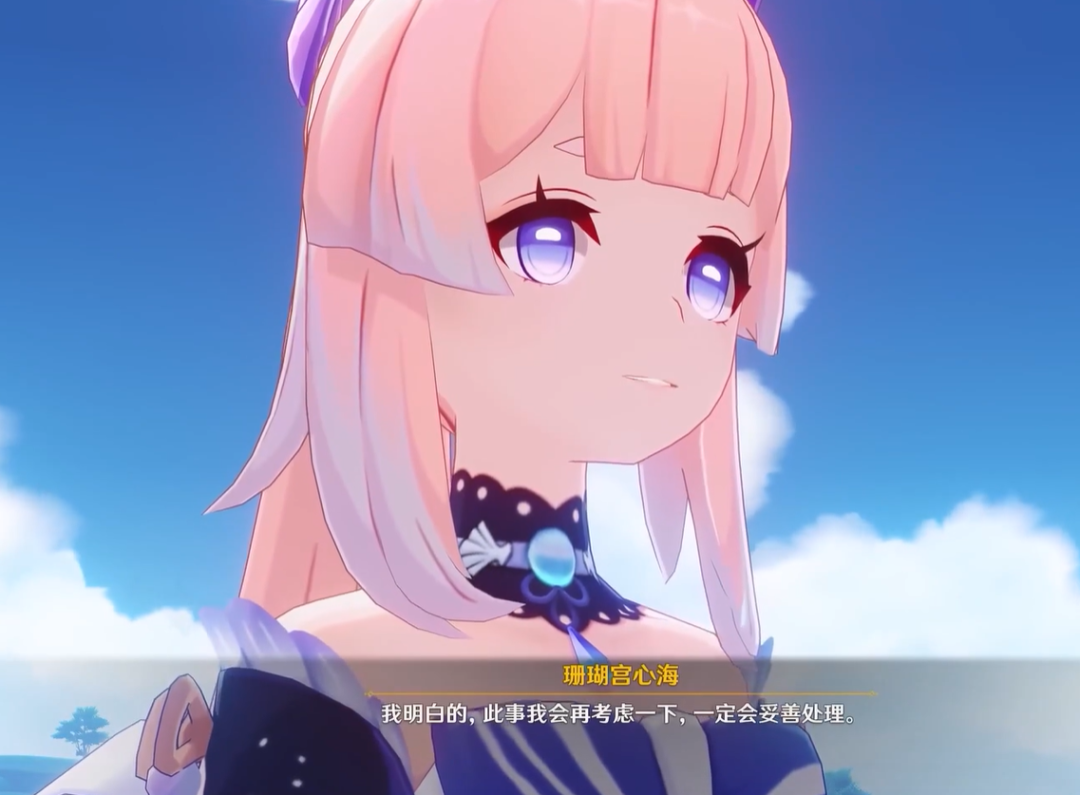 可如果僅僅如此,心海的人物設計恐怕很難説得上優秀。至少在我自己體驗完主線流程後,即便觀感上因為她的造型加分不少,但從中感受到更多的依然是一個縫合式的,脱離現實的,難以共情的臉譜化設定。