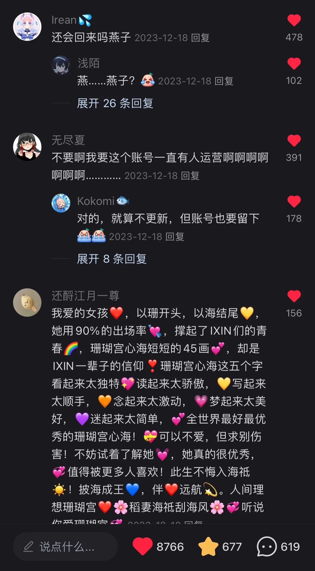 好在到頭來,大夥用心帶入的故事並非南柯一夢。或許是聽到了社羣呼聲,今年9月26日,已經沉寂了9個月的心海小紅書賬號再度恢復更新
