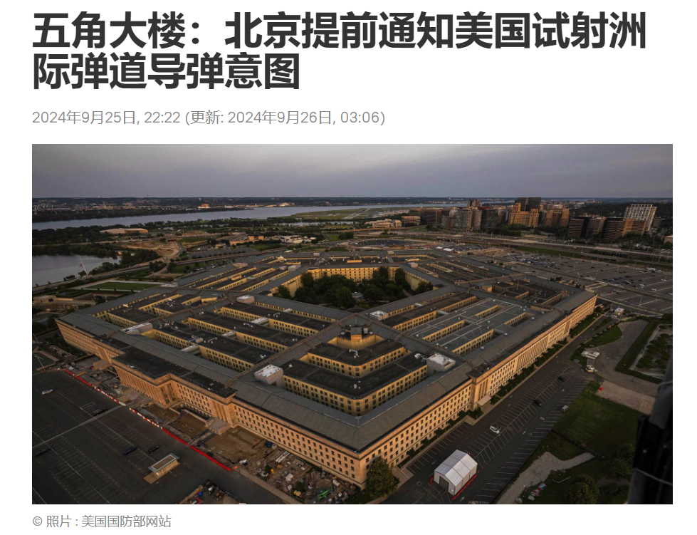 7、五角大樓:北京提前通知美國試射洲際彈道導彈意圖 - 2024年9月25日, 俄羅斯衞星通訊社 (sputniknews.cn)