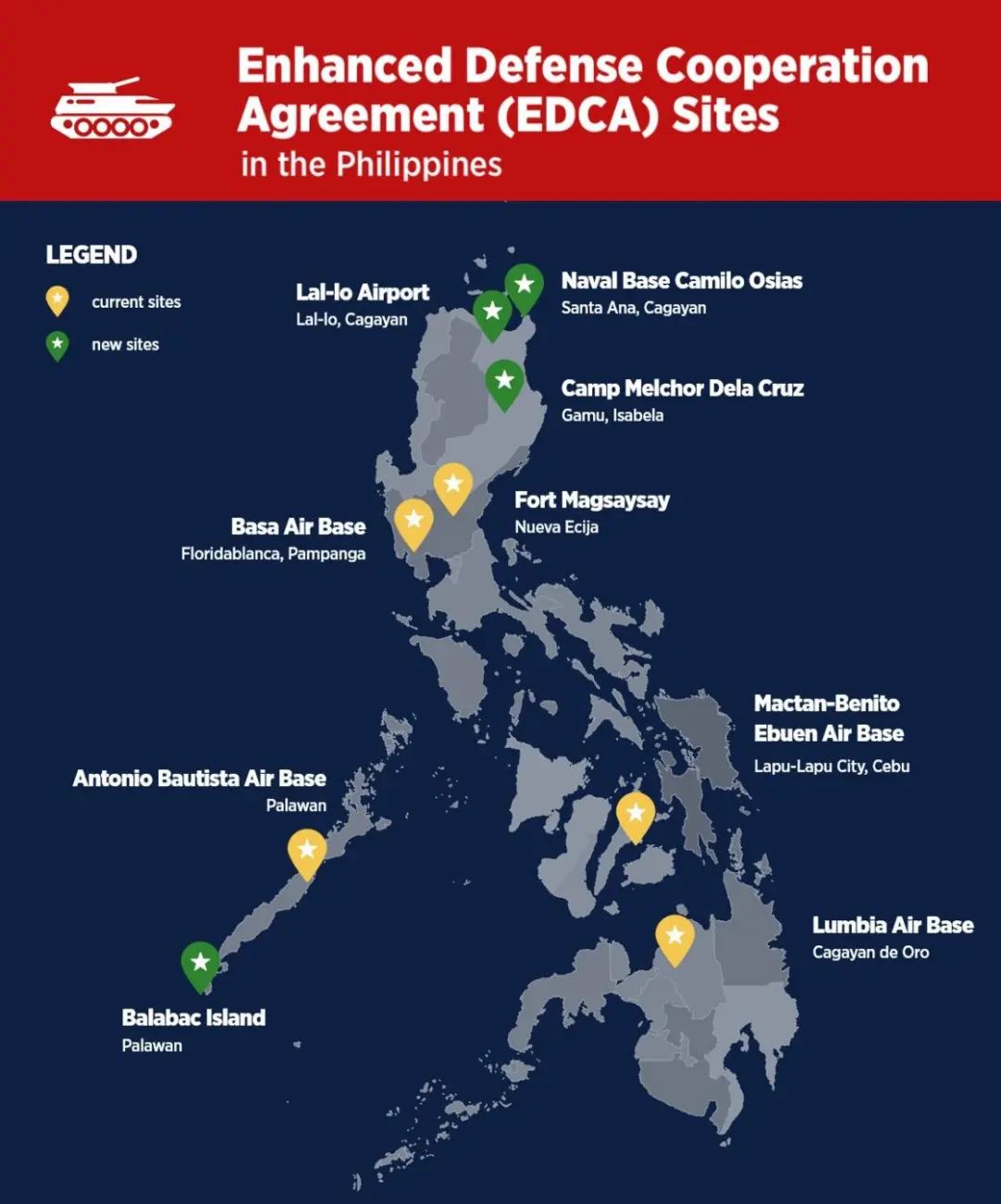 注:圖中黃色標註為菲律賓中程導彈系統部署位置