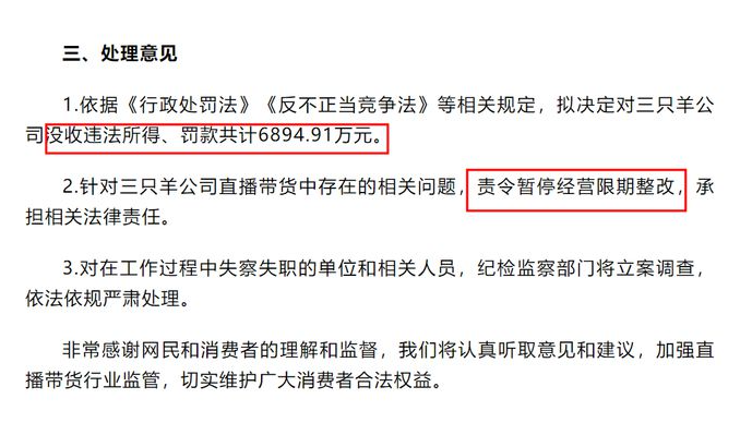 在無數網友等待中,小楊哥的處罰終於來了。罰了近7000萬、暫停經營限期整改,公眾也終於等來了三隻羊的官方道歉。