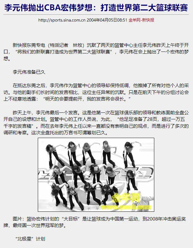 而就在宏遠奪冠一個月後,時任籃管中心主任李元偉,率領全國24個籃球俱樂部總經理及主教練,到東莞考察,最終推動了著名的北極星計劃。彼時,在整個CBA,只有3傢俱樂部為獨立法人(廣東、廣匯、奧神),其他均為企業與政府共建形式。